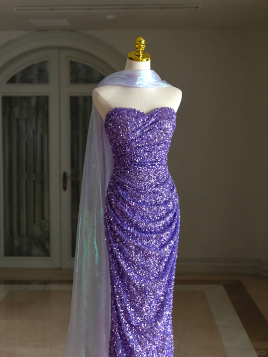 Sexy Mermaid Sweetheart Grape Sequin Long Prom Dresses Party Dress 20th Birthday Outfits Graduation Dresses DH1557