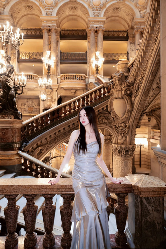 Sexy Mermaid Strapless Silver Gray Sequin Long Prom Dresses Party Dress 20th Birthday Outfits Graduation Dresses DH1896
