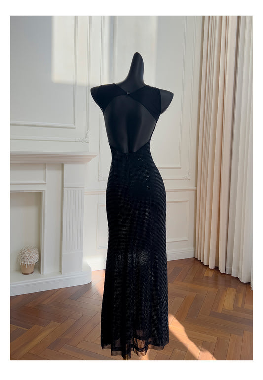 Sexy Mermaid Square Neck Black Sequin Long Prom Dresses Party Dress 20th Birthday Outfits Graduation Dresses DH1995