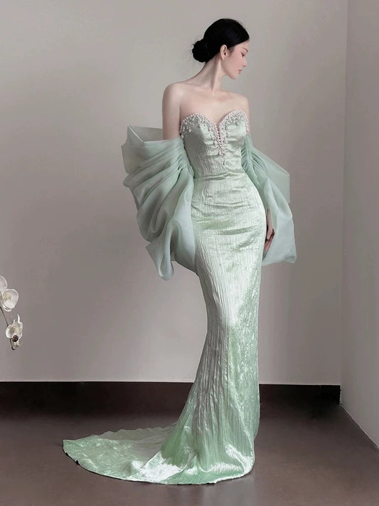Classy Mermaid Sweetheart Mint Green Satin Long Prom Dresses Party Dress Birthday Outfits Graduation Dresses W0758