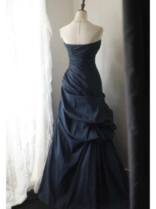 Classy Mermaid Sweetheart Navy Blue Satin Long Prom Dresses Party Dress Birthday Outfits Graduation Dresses W0766