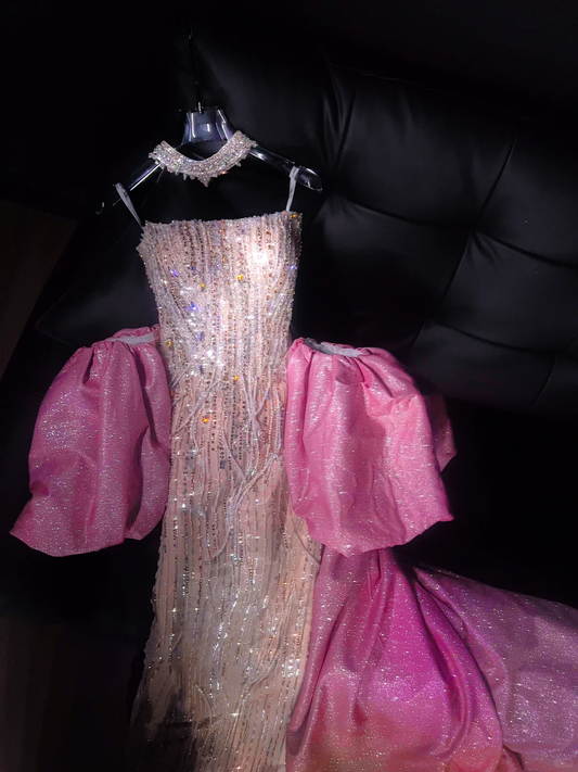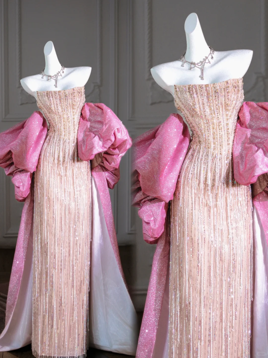Pretty Mermaid Strapless Sequin Beads Champagne Long Prom Dress Party Dress Graduation Dresses DP1986