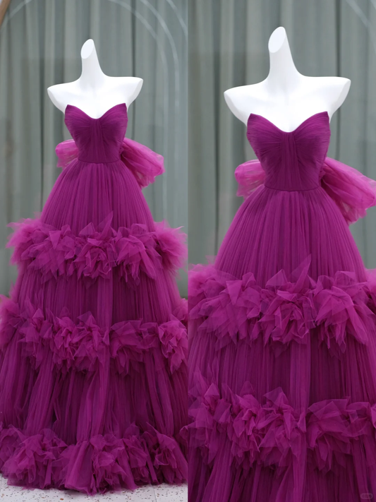 Gorgeous Ball Gown Sweetheart Hot Pink Floral Tulle Long Prom Dress Party Dress Graduation Dresses DP1999