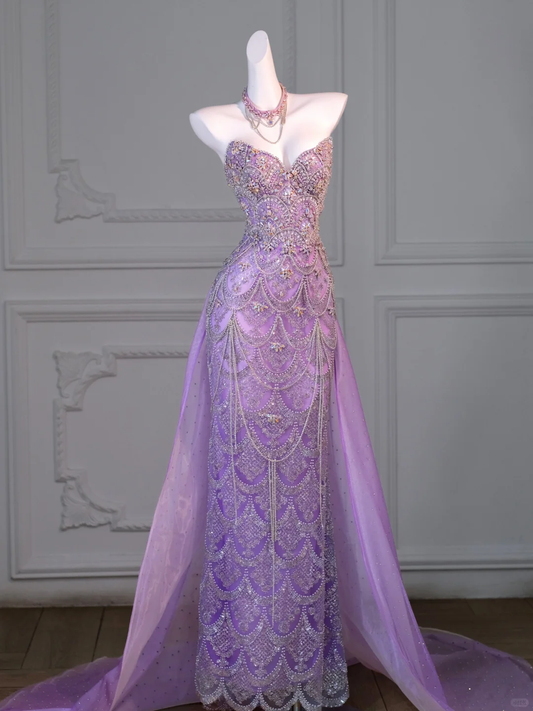 Gorgeous Mermaid Sweetheart Lilac Slit Sequin Long Prom Dress Party Dress Graduation Dresses With Cape DP1984
