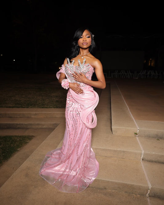 Gorgeous Mermaid Sweetheart Pink Satin Sequin Long Prom Dress Party Dress Graduation Dresses D2599