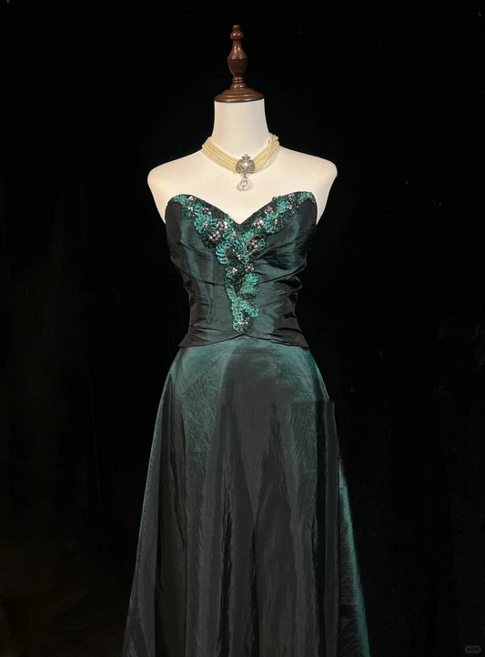 Vintage A line Sweetheart Green Long Prom Dress Party Dress Graduation Dresses Birthday Outfits DP1834
