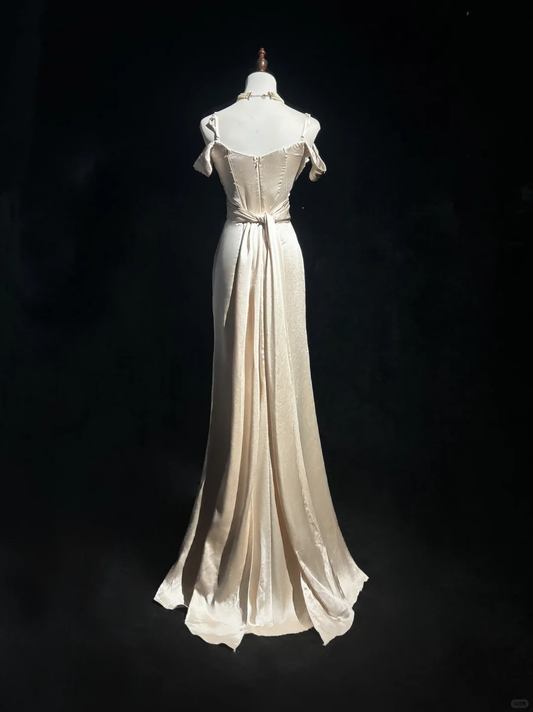 Gorgeous Mermaid Spaghetti Straps Champagne Long Prom Dress Party Dress Graduation Dresses DP1835