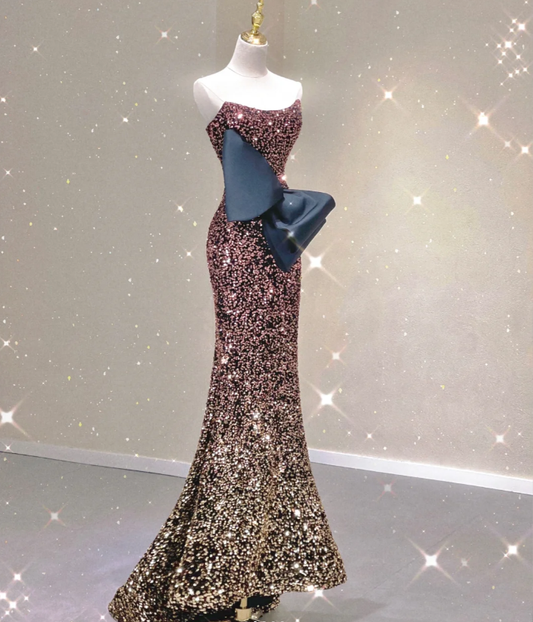 Pretty Mermaid Strapless Long Sequin Prom Dresses Graduation Dress High School Classy Evening Dresses DP428