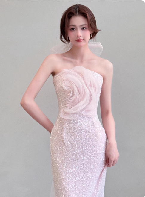 Gorgeous Strapless Mermaid Long Prom Dresses Pink Evening Dresses DP3317