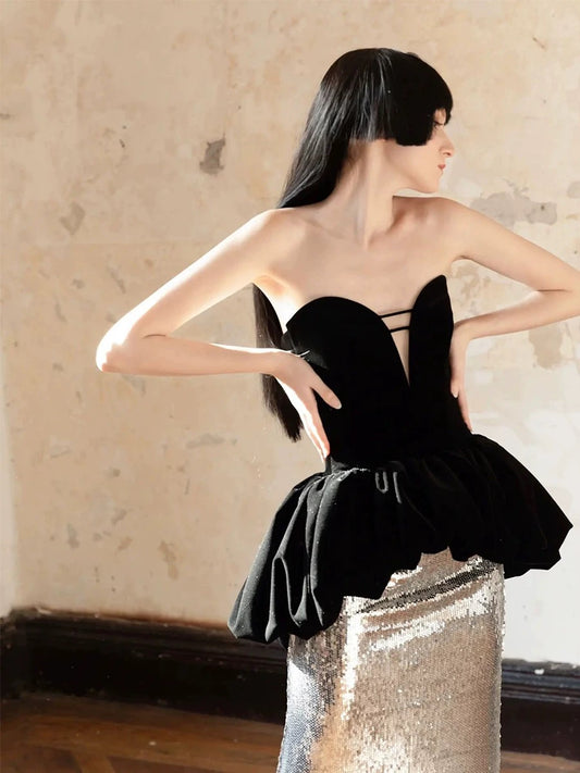 Edle Meerjungfrau trägerloses Pailletten Abendkleid Lange Ballkleider H2886