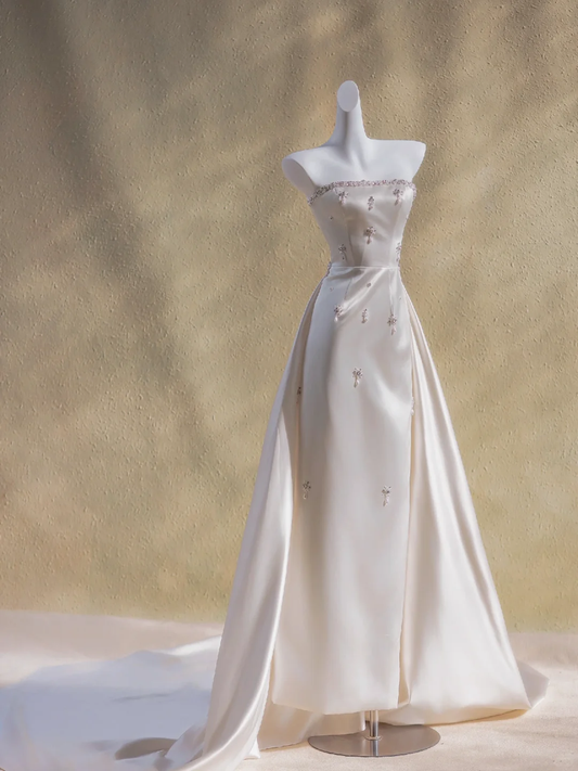 Simple Wedding Dress Sheath Strapless Satin Beads Long Summer Wedding Dresses Bridal Gowns DP1880
