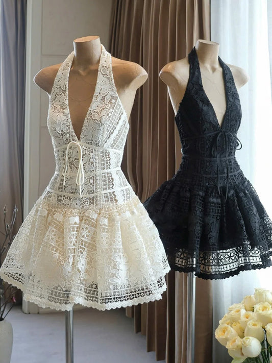 Cute A line Spaghetti Straps Short Summer Lace Birthday Dress Hoco Dress Birthday Outfit 23rd Birthday Mini Party Dresses DP1717