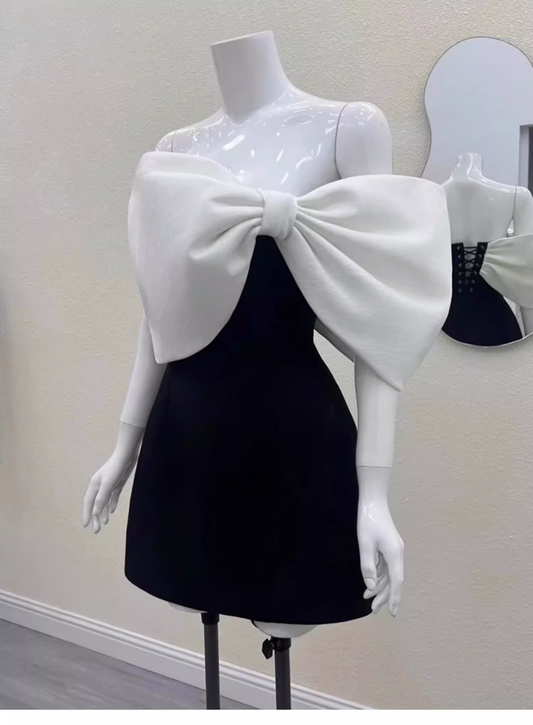 Cute A line Strapless Black Satin Mini Short Formal 8th Grade Homecoming Dresses Summer Middle School Hoco Dress Homecoming Outfits Birthday Dress DH632