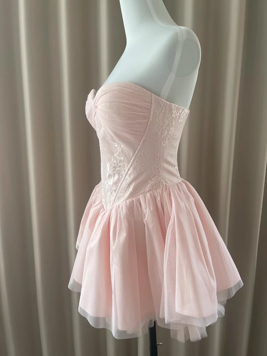 Pretty Ball Gown Sweetheart Tulle Pink Short Homecoming Dress Summer Middle School Formal 8th Grade Hoco Dresses Summer Homecoming Outfits DH637
