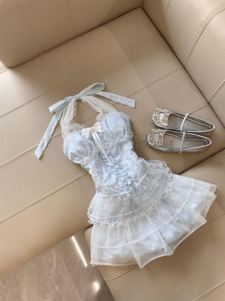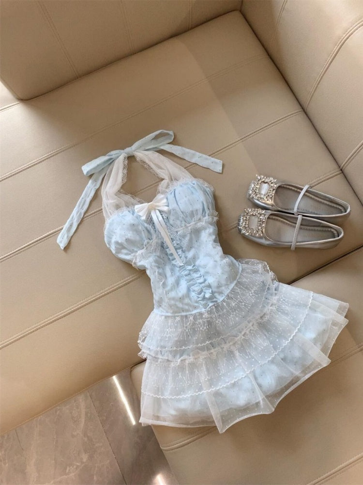 Cute A Line Halter Light Blue Tulle Formal 8th Grade Homecoming Dresses Middle School Short Cocktail Gowns Graduation Dress Hoco Outfits DH2085