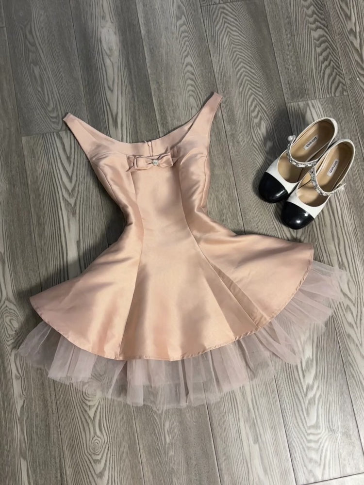 Cute A line Scoop Pink Satin Short Mini Formal 8th Grade Homecoming Dresses Middle School Short Cocktail Dress Hoco Outfits DH2082