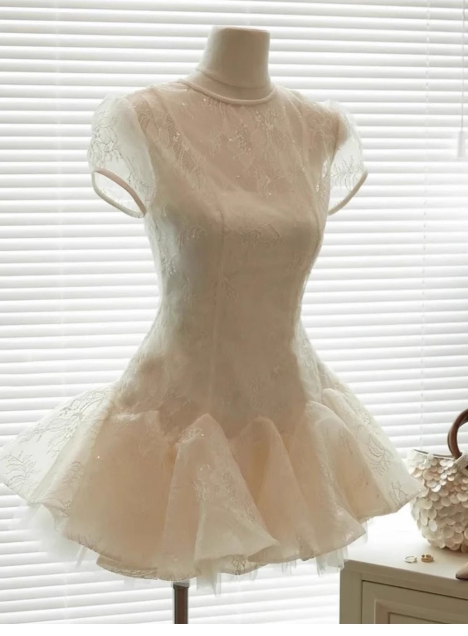 Cute A line Scoop Short Short Sleeves Lace Summer Birthday Dress Hoco Dress Mini Birthday Outfit 21st Birthday Party Dresses DP1728
