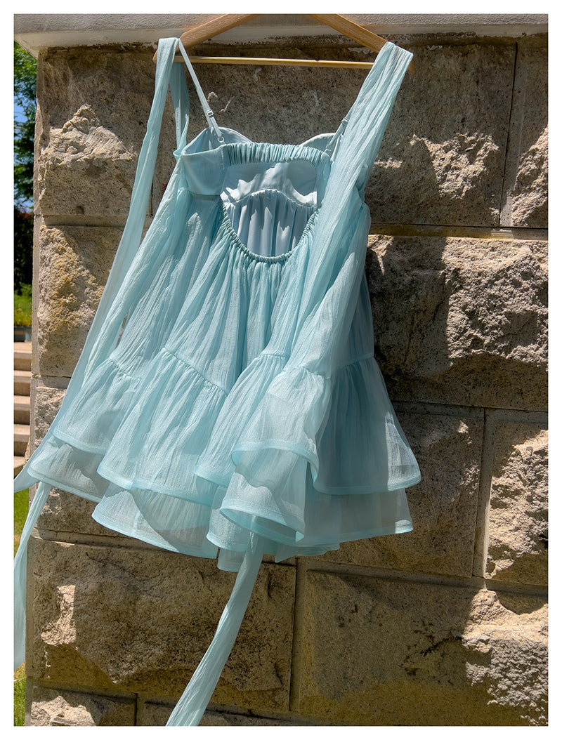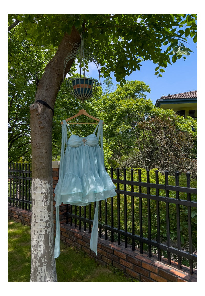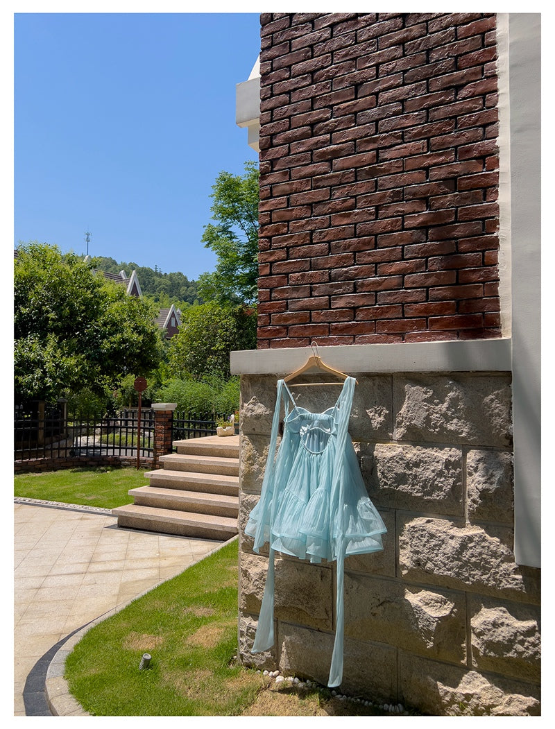 Cute A Line Spaghetti Straps Blue Backless Grad Dress Inspo Short Mini Formal 8th Grade Homecoming Dresses High School Hoco Court Dress Graduation Dress Hoco Outfits DH1903
