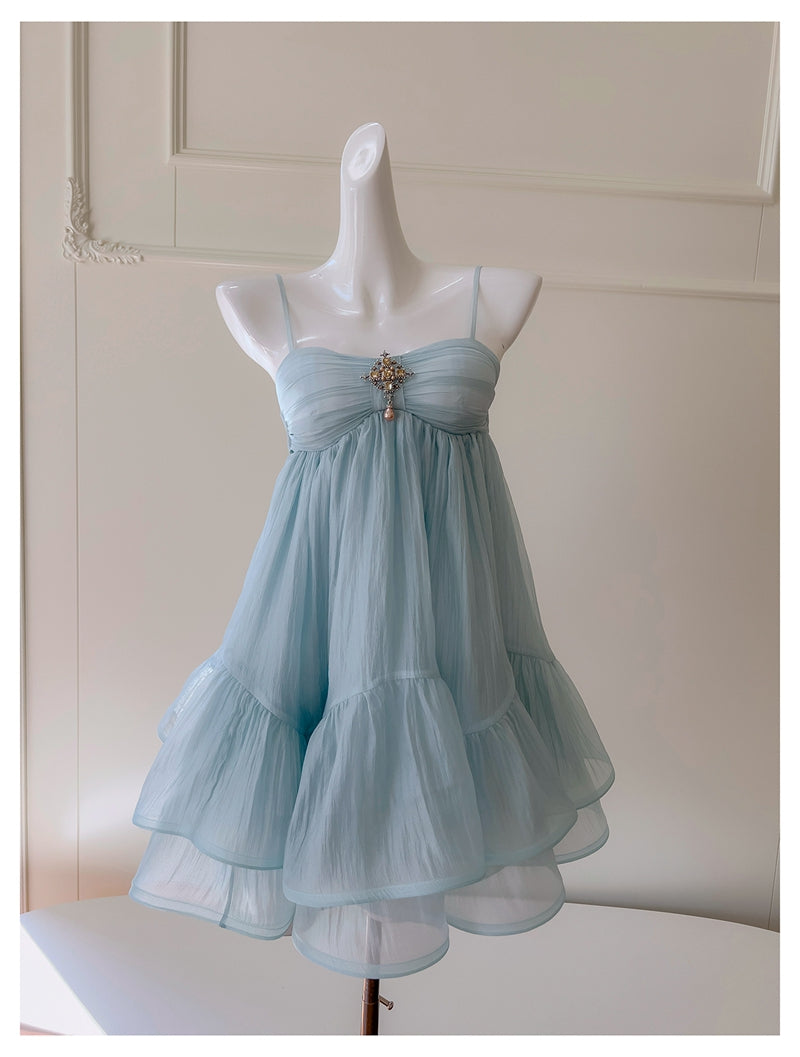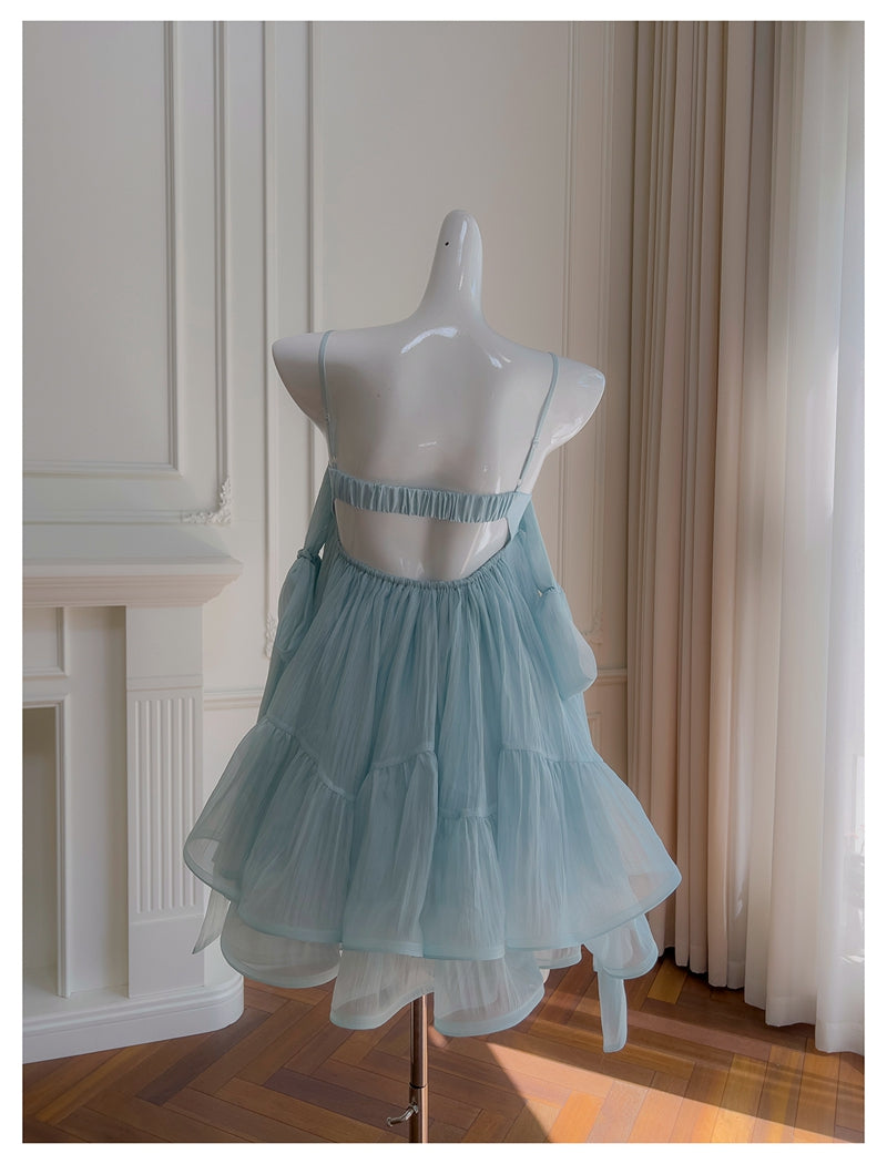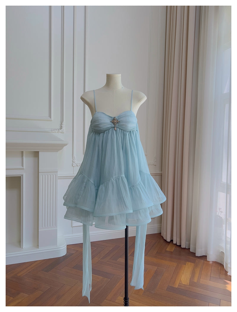 Cute A Line Spaghetti Straps Blue Backless Grad Dress Inspo Short Mini Formal 8th Grade Homecoming Dresses High School Hoco Court Dress Graduation Dress Hoco Outfits DH1904