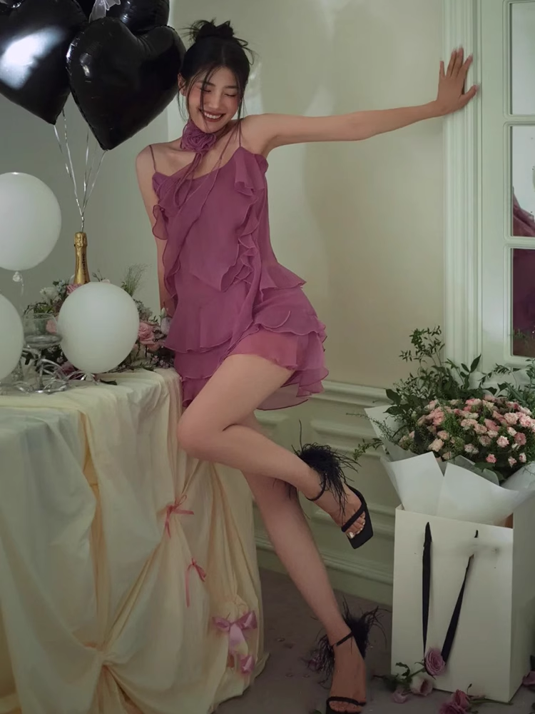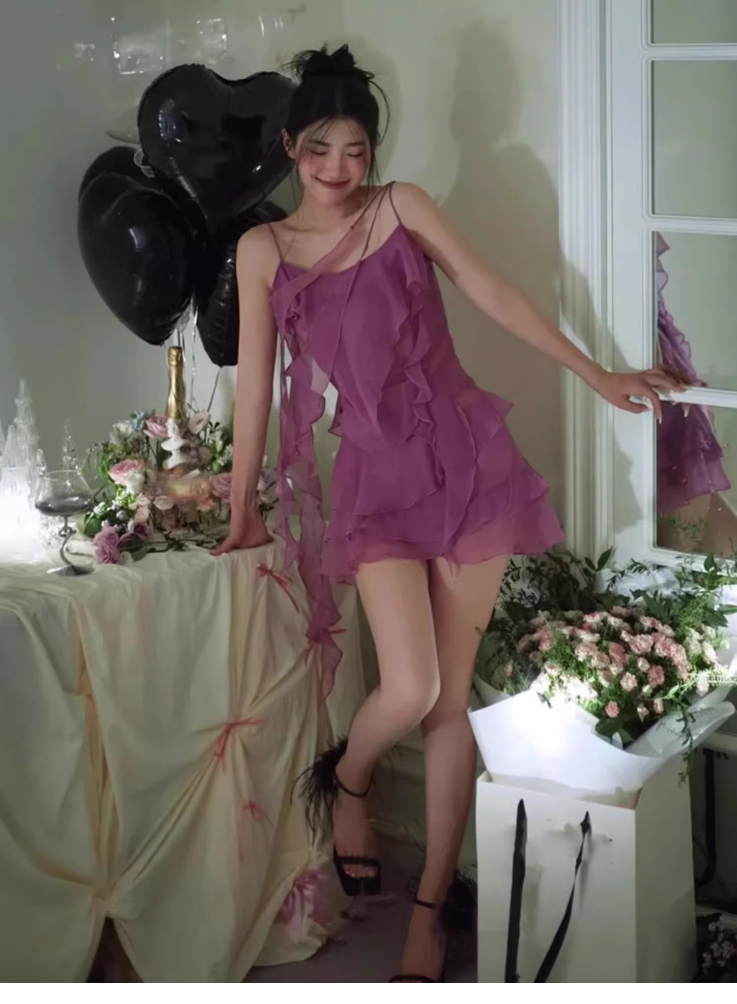 Cute A line Spaghetti Straps Grape Sleeveless Short Formal 8th Grade Homecoming Dresses Summer Middle School Hoco Dress Homecoming Outfits DH607