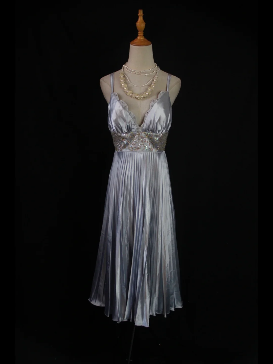 Cute A Line Spaghetti Straps Gray Satin Formal 8th Grade Homecoming Dresses Summer Middle School Hoco Dress Homecoming Outfits DH576