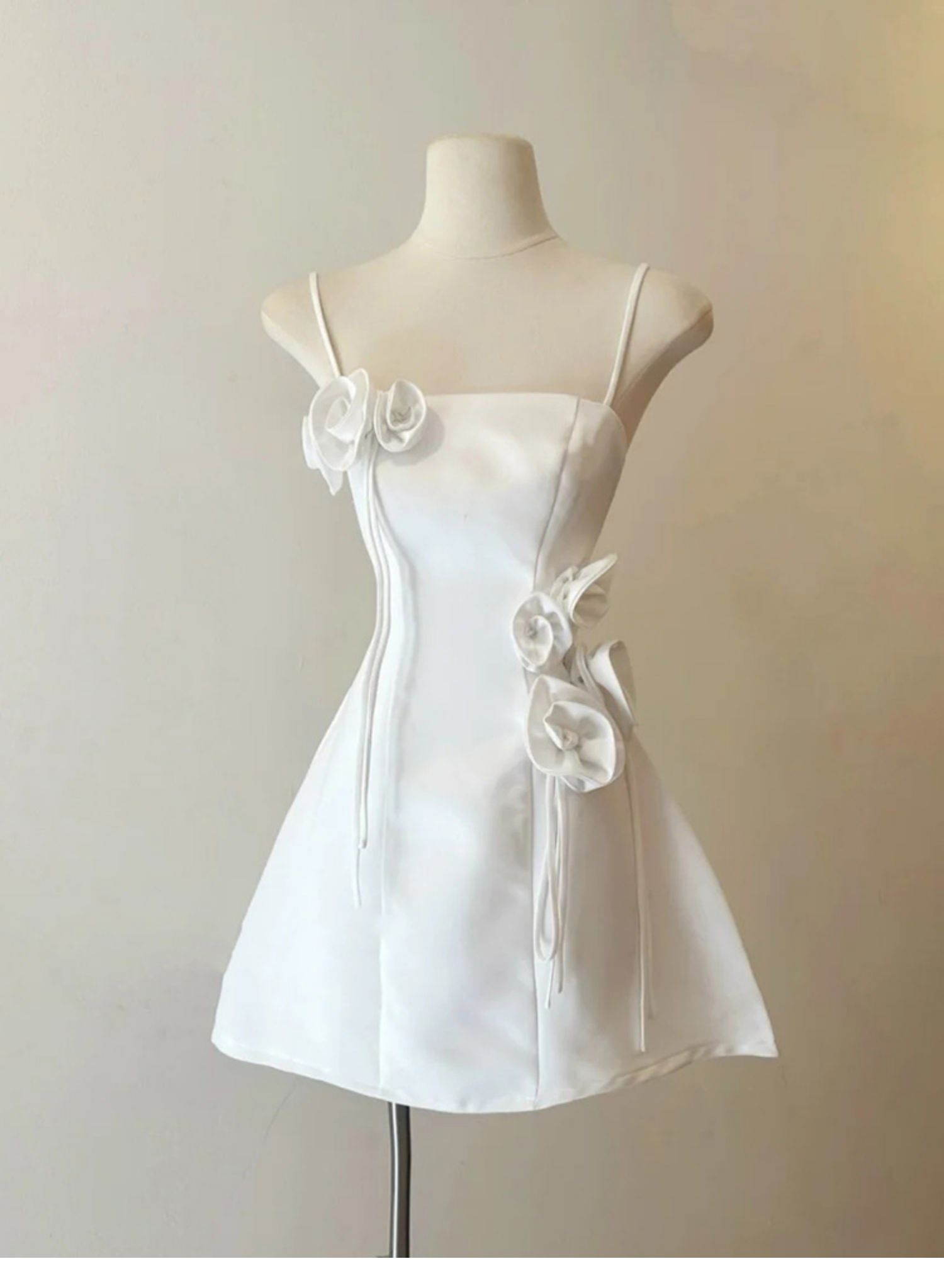 Cute A Line Spaghetti Straps Pink Satin Formal 8th Grade Homecoming Dresses Summer Middle School Hoco Dress Homecoming Outfits DH1002