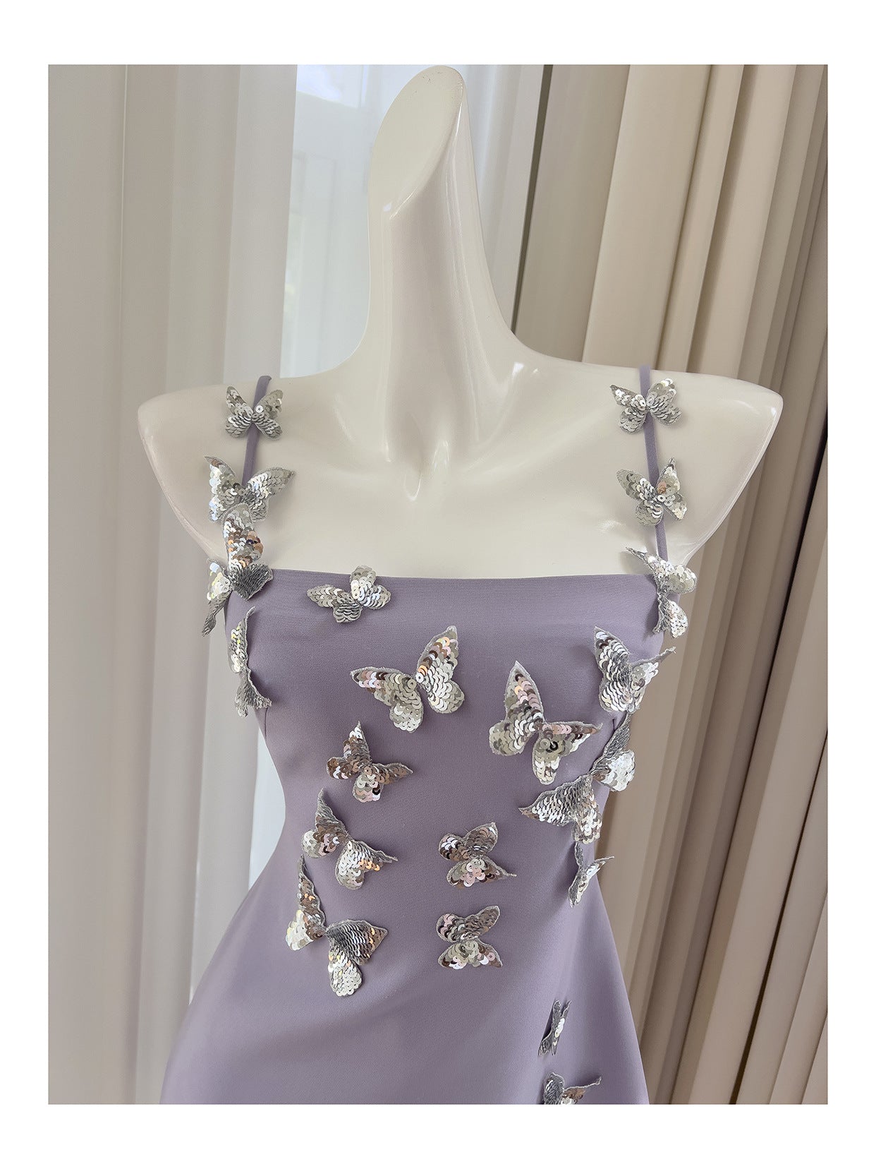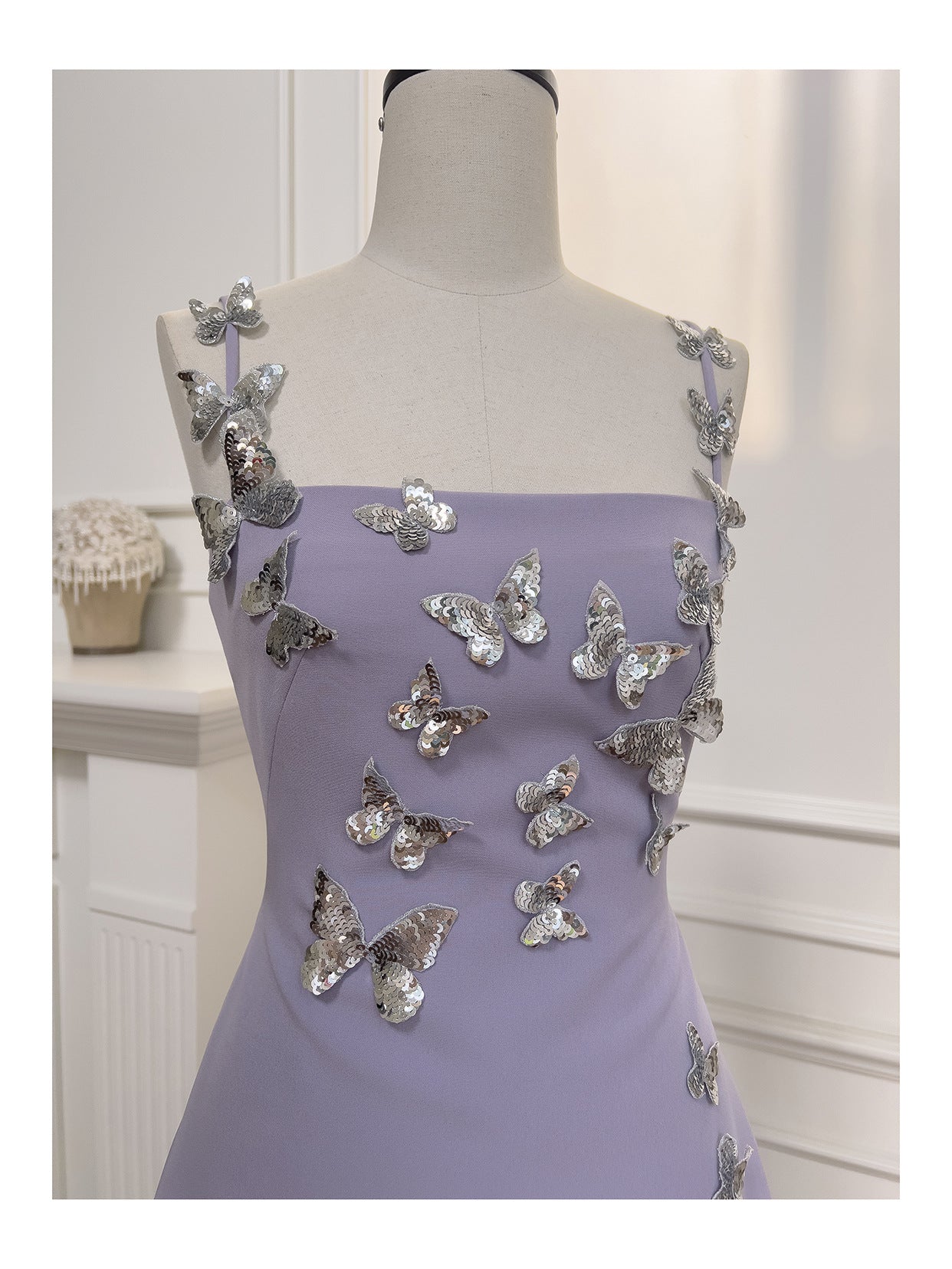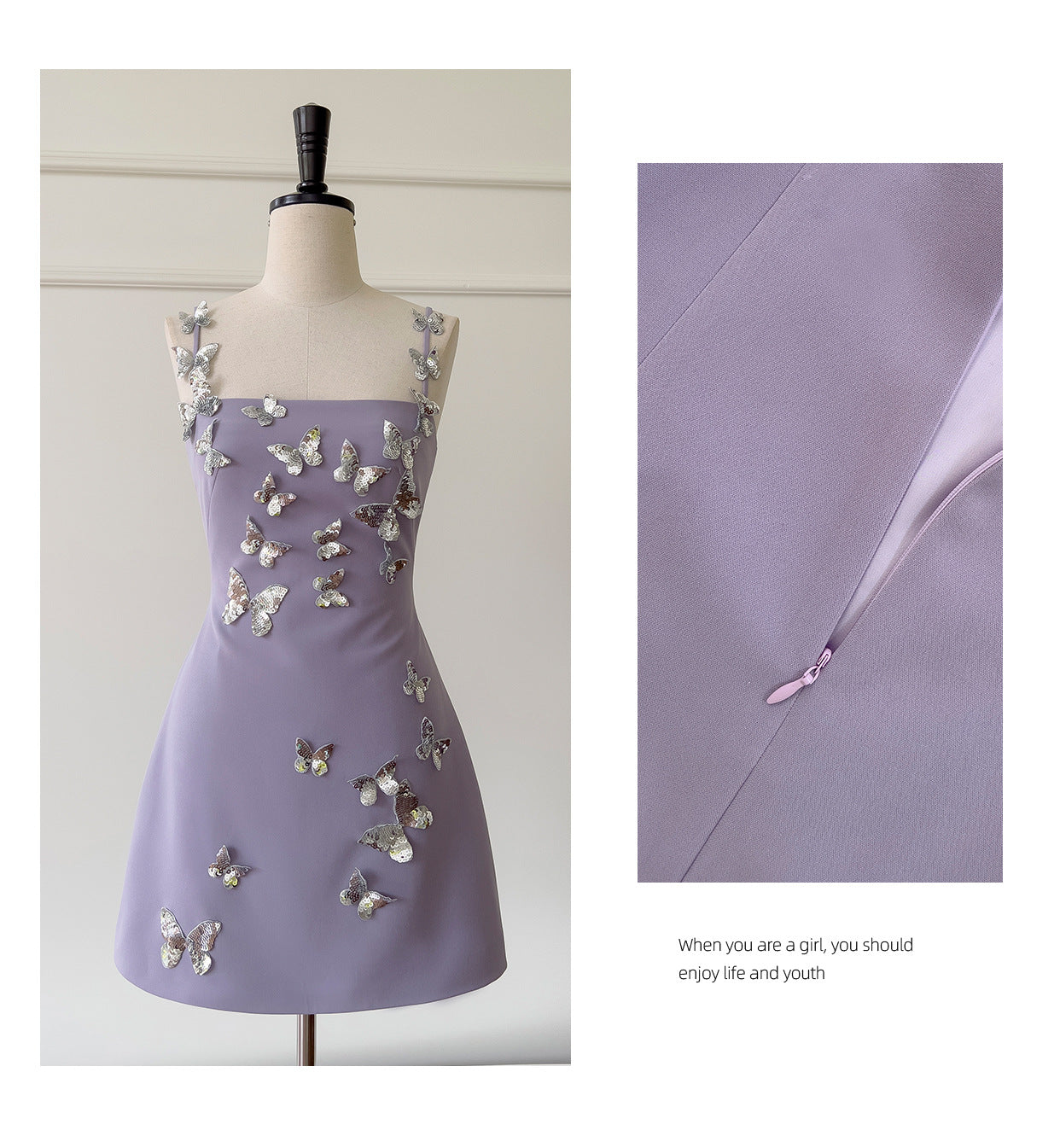 Cute A line Spaghetti Straps Satin Liac Short Grad Dress Inspo Short Mini Formal 8th Grade Homecoming Dresses High School Hoco Court Dress Graduation Dress Cocktail 18th Birthday Outfits DH1944