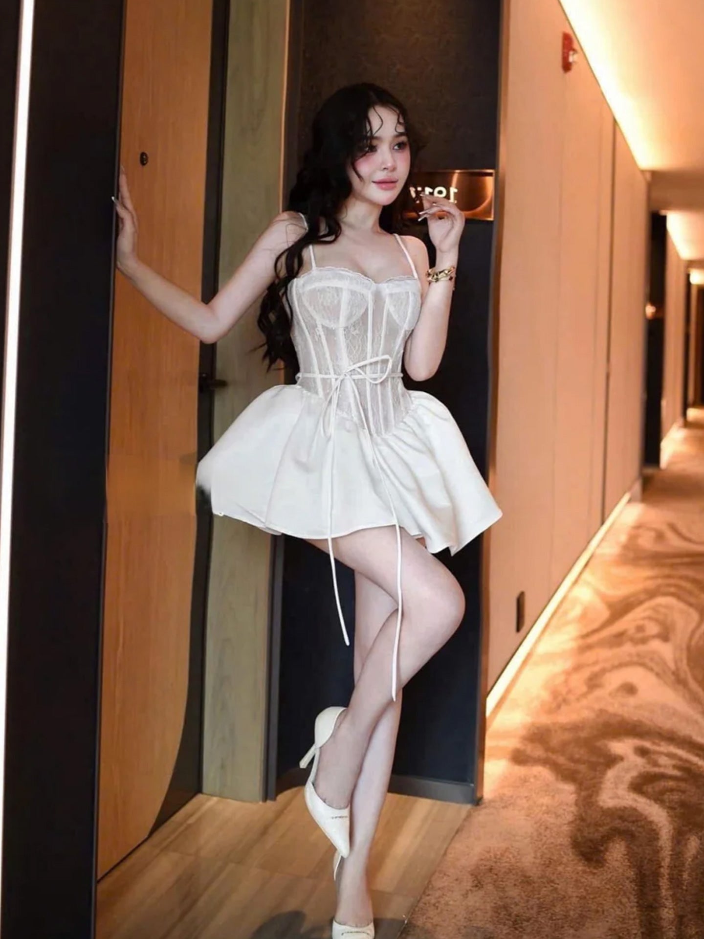 Cute A line Spaghetti Straps White Satin Mini Short Formal 8th Grade Homecoming Dresses Summer Middle School Hoco Dress Homecoming Outfits DH1018