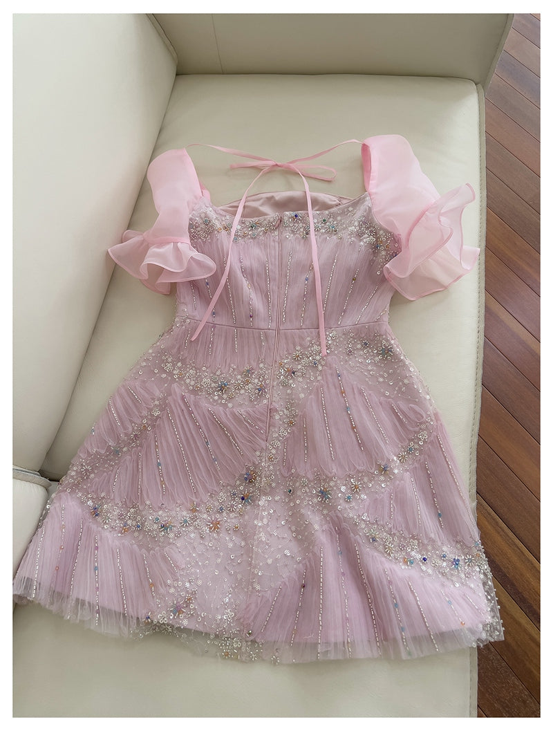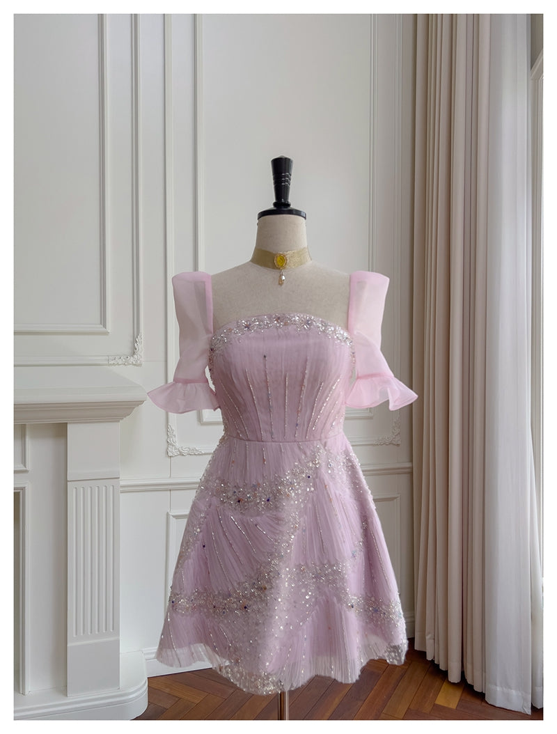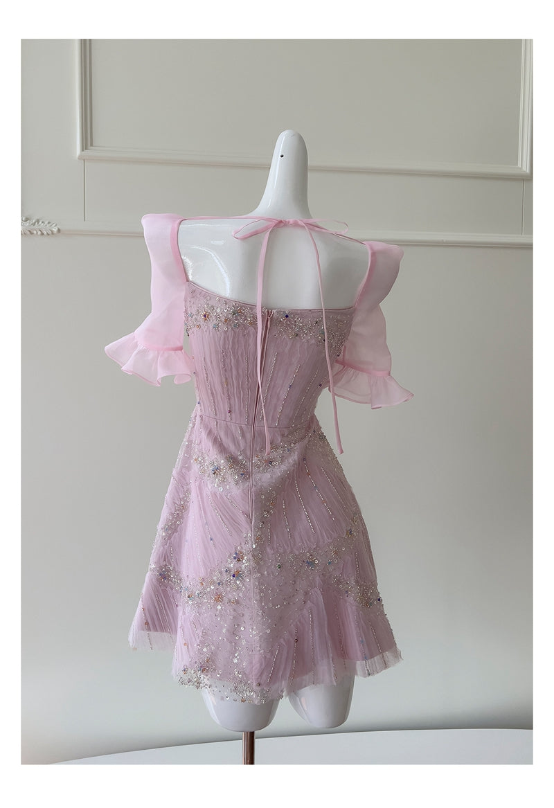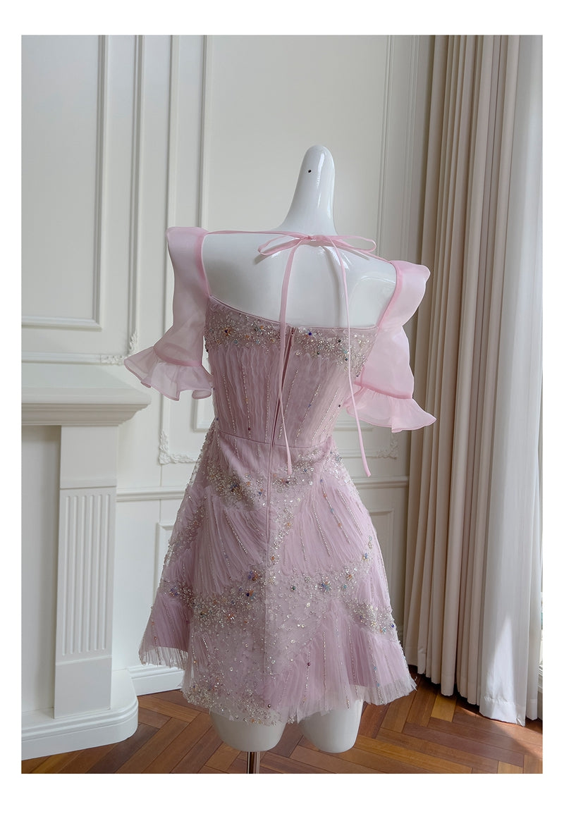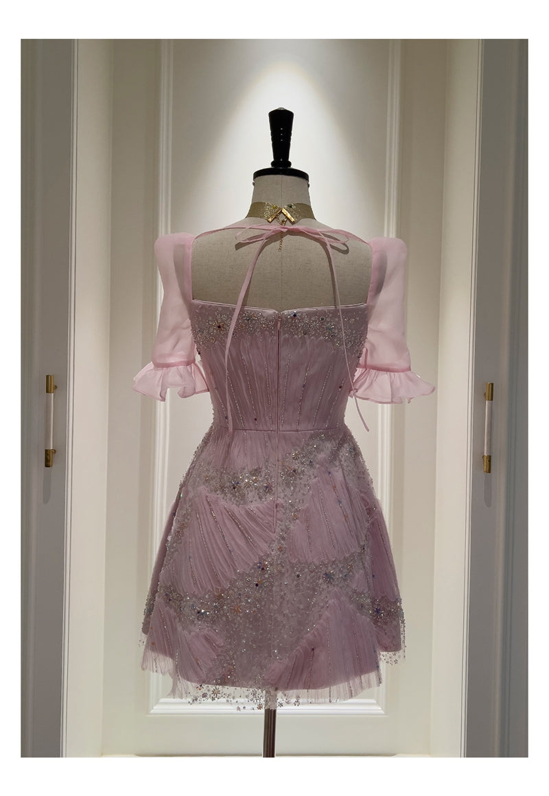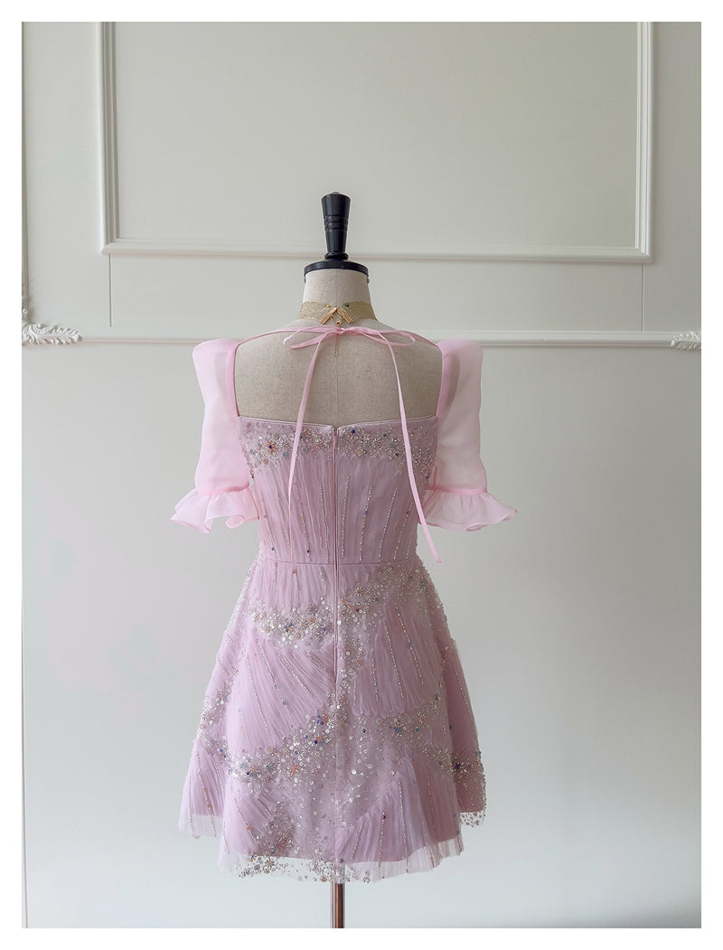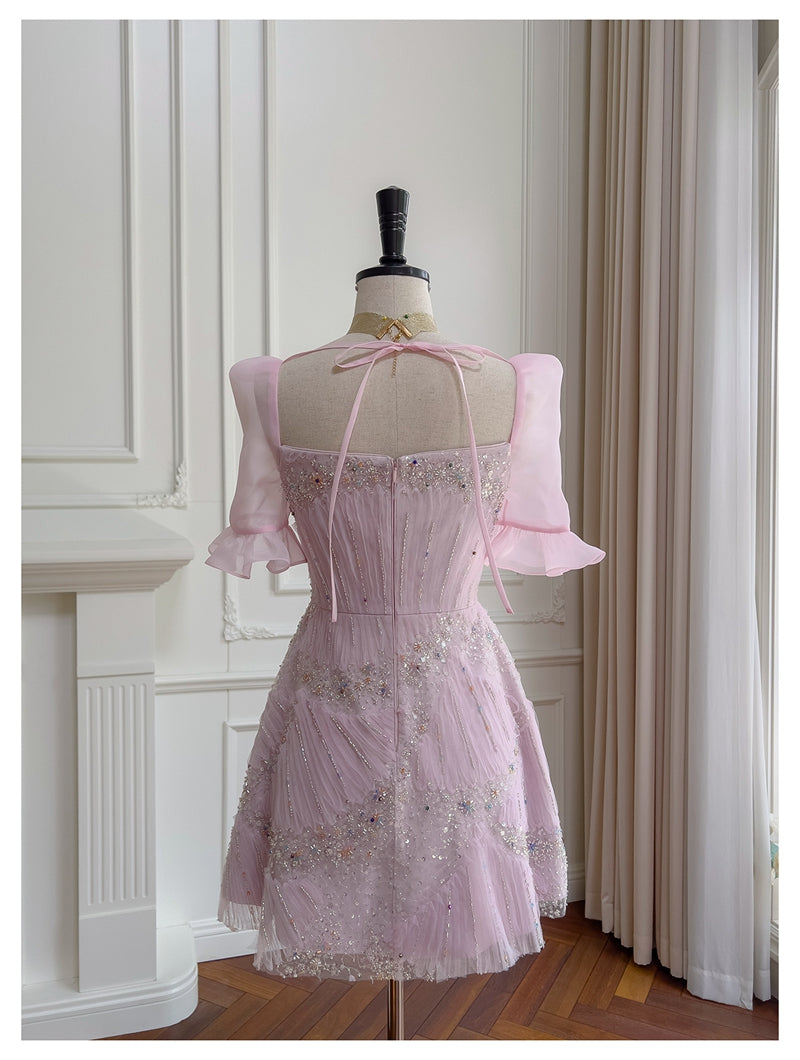 Cute A Line Square Neck Pink Sequin Grad Dress Inspo Short Mini Formal 8th Grade Homecoming Dresses High School Hoco Court Dress Graduation Dress Cocktail Dress 16th Birthday Outfits DH1916