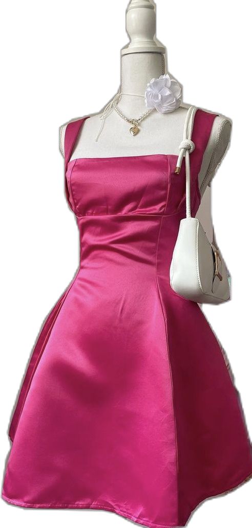 Cute A line Square Neck Sleeveless Hot Pink Short Formal 8th Grade Homecoming Dresses Summer Middle School Hoco Dress Homecoming Outfits DH586