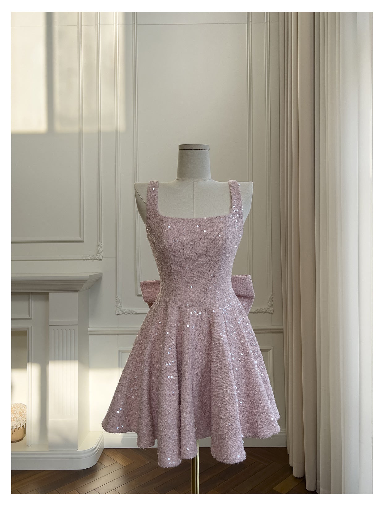 Cute A Line Square Pink Sequin Formal 8th Grade Homecoming Dresses Middle School Short Cocktail Gowns Graduation Dress Hoco Outfits D1994
