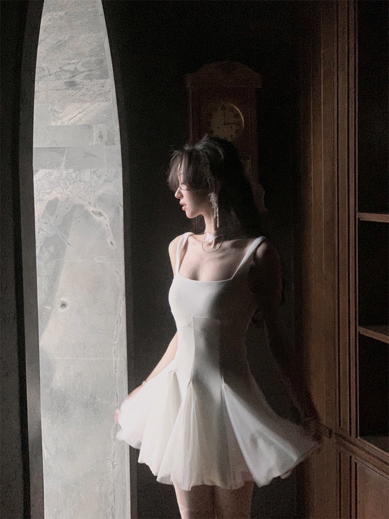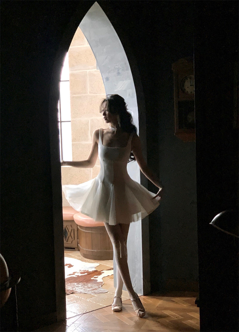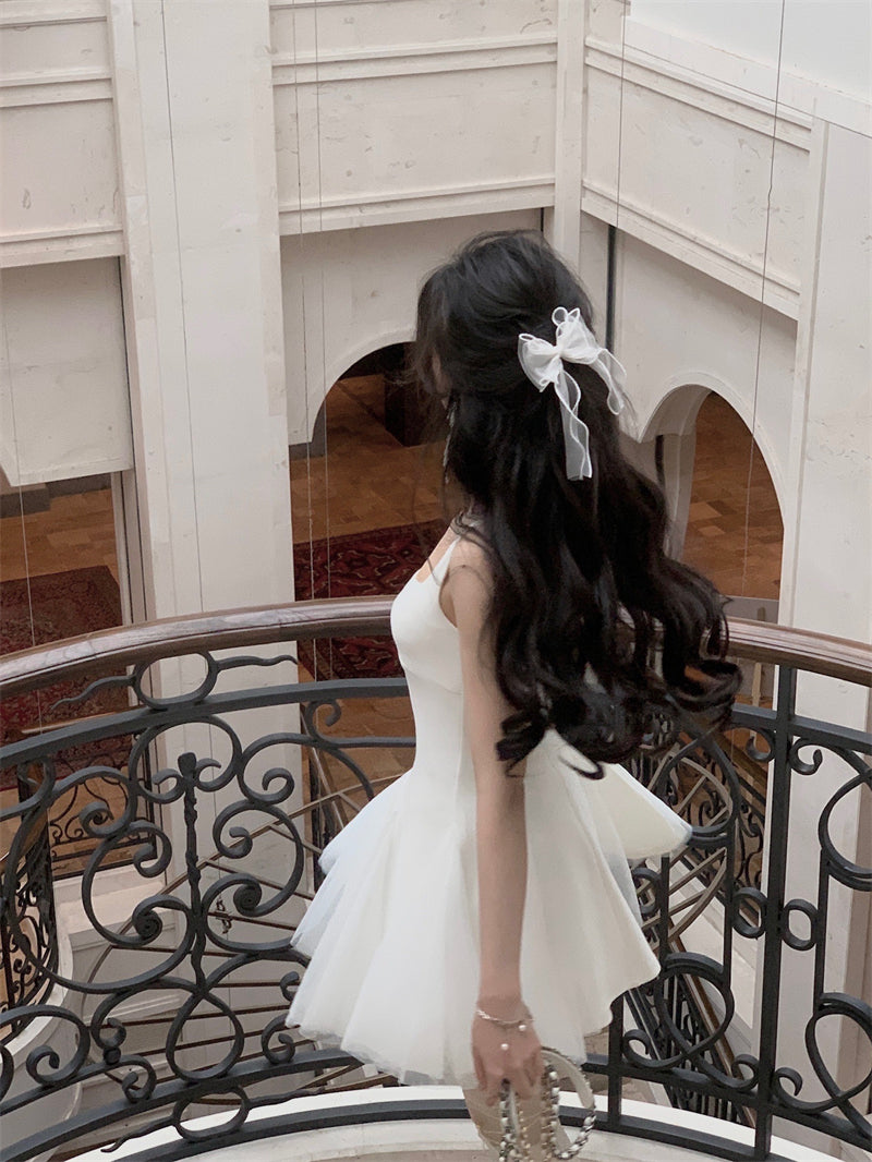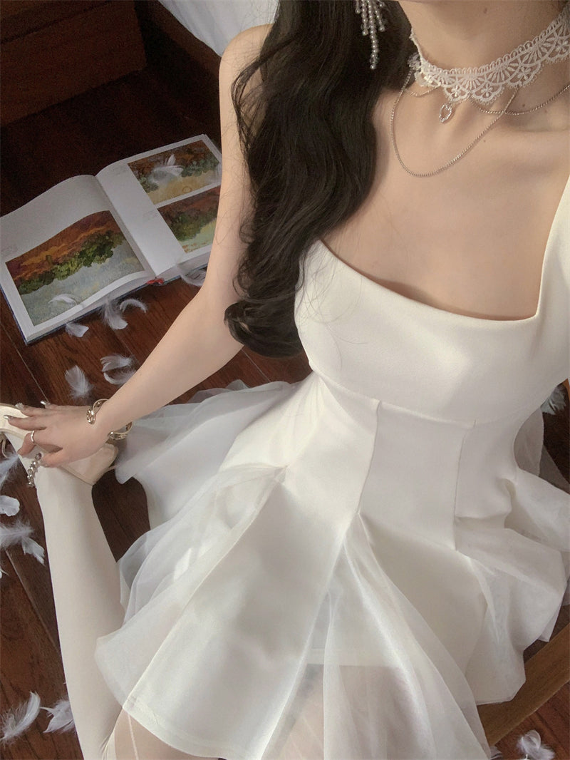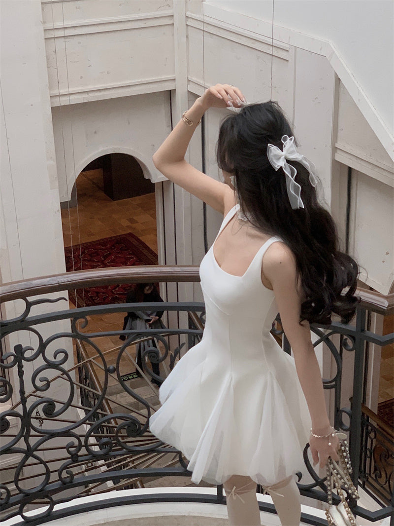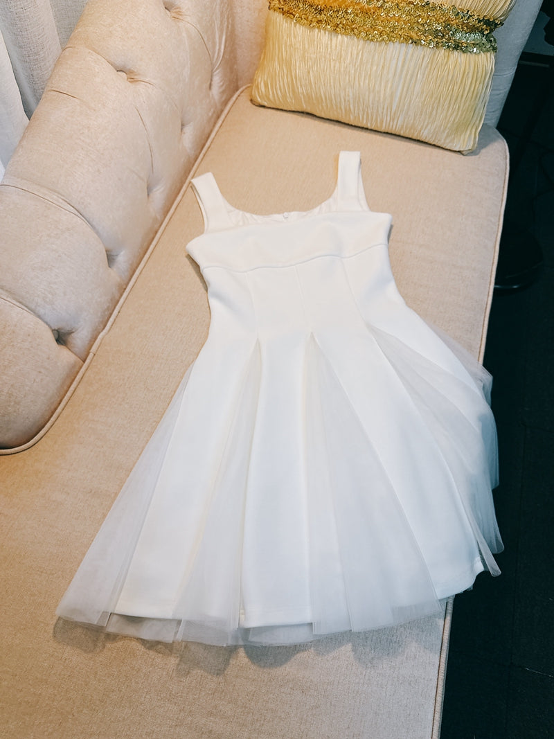 Cute A Line Square White Grad Dress Inspo Short Mini Formal 8th Grade Homecoming Dresses High School Hoco Court Dress Graduation Dress Hoco Outfits DH1897