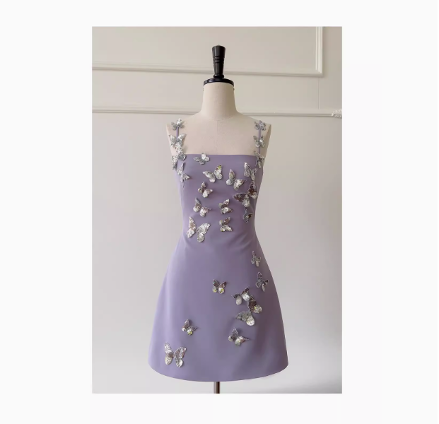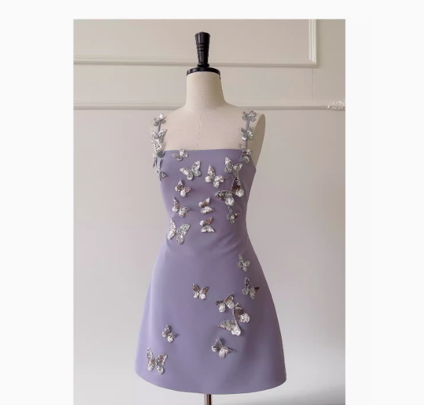 Cute A line Straps Satin Liac Short Grad Dress Inspo Short Mini Formal 8th Grade Homecoming Dresses High School Hoco Court Dress Graduation Dress Cocktail 18th Birthday Outfits DH1943