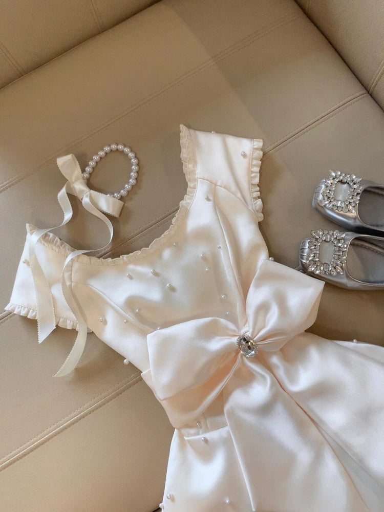 Cute A Line White Satin Pearls Formal 8th Grade Homecoming Dresses Middle School Short Cocktail Gowns Graduation Dress Hoco Outfits DH2086
