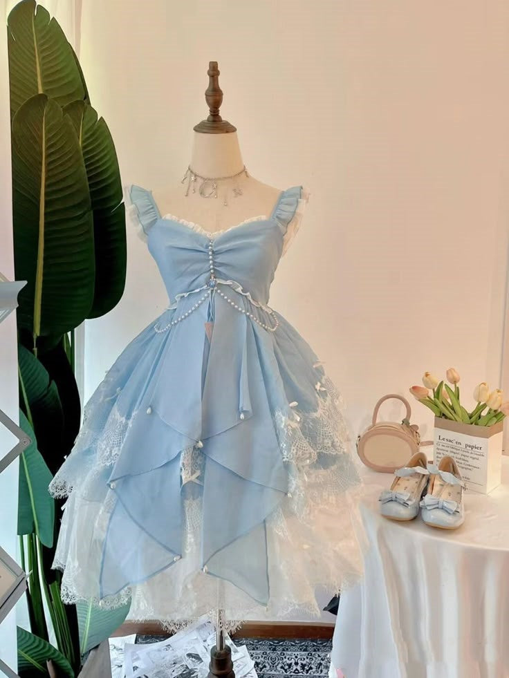 Cute Ball Gown Light Blue Chiffon 8th Grade Dance Dresses Middle School Grad Outfits Homecoming Dresses Short Mini Hoco Dress DH283