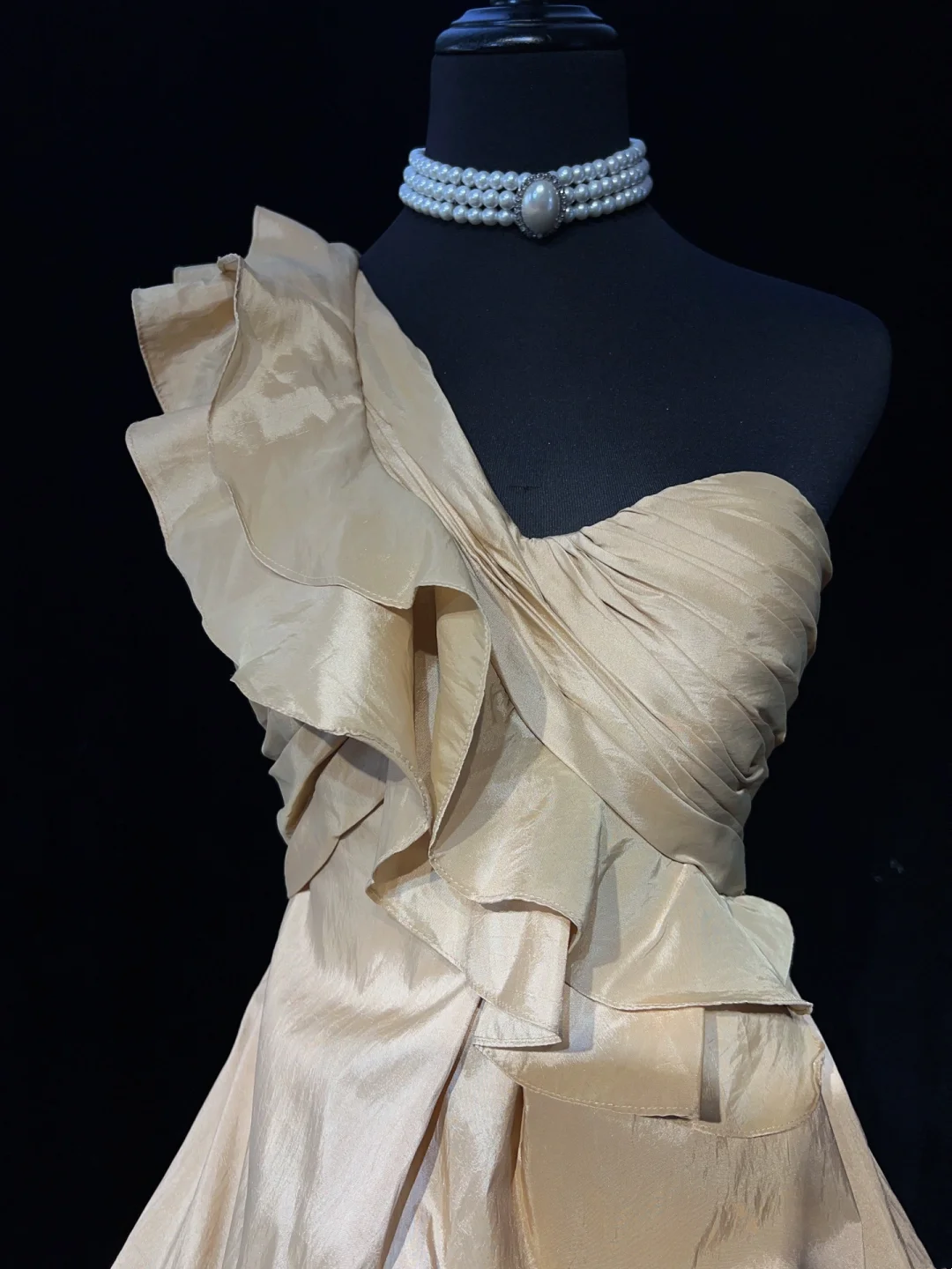 Cute Ball Gown One Shoulder Champagne Taffeta Mini Short Formal 7th Grade Homecoming Dresses Middle School Short Prom Dress Cocktail Birthday Outfits DH1434