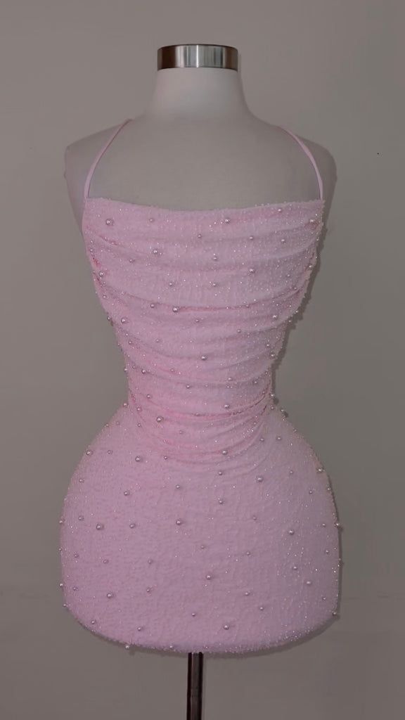Cute Sheath Spaghetti Straps Sequin Pink Mini Short Formal 7th Grade Homecoming Dresses Middle School Short Prom Dress Cocktail Birthday Outfits DH1410