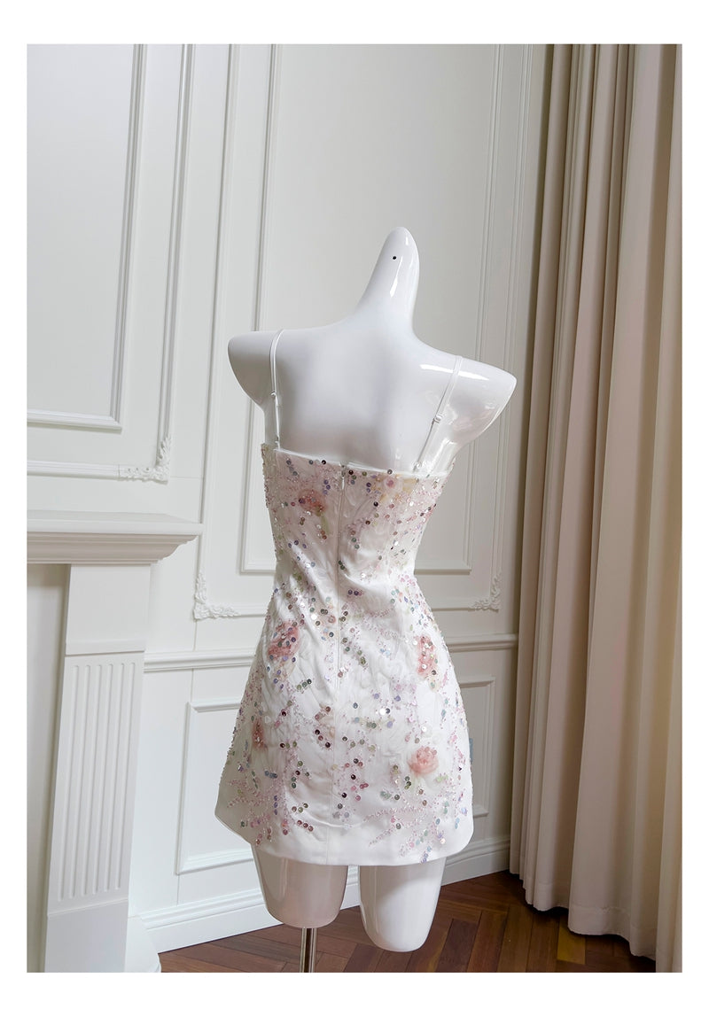 Cute Sheath Spaghetti Straps White Grad Dress Inspo Short Mini Formal 8th Grade Homecoming Dresses High School Hoco Court Dress Graduation Dress Hoco Outfits DH1899