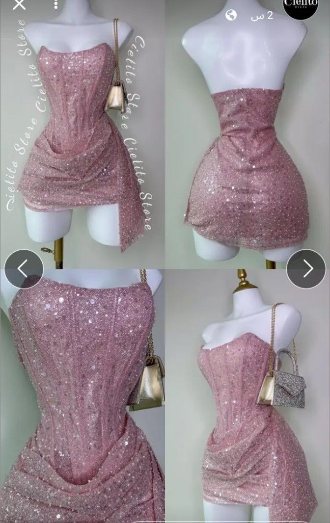 Cute Sheath Strapless Pink Sequin Mini Short Formal 8th Grade Homecoming Dresses Summer Middle School Hoco Dress Homecoming Outfits DH716