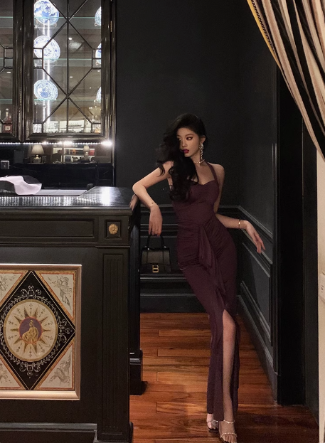 Elegant Mermaid Halter Grape Sleeveless 23rd Birthday Dress Party Gown Birthday Outfits Birthday Dress Ideas For Women DP1465