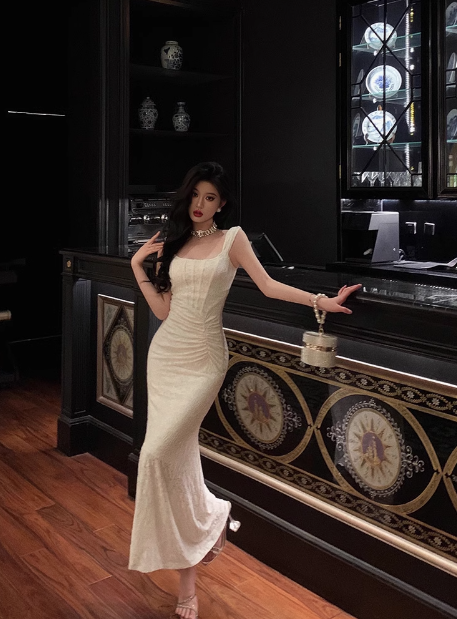 Elegant Mermaid Square White Lace 21st Birthday Dress Party Gown Birthday Outfits Birthday Dress Ideas For Women DP1444