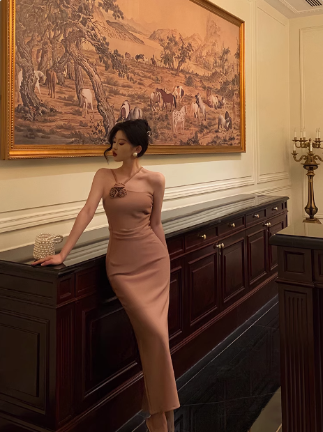 Elegant Sheath Dusty Pink Sleeveless 23rd Birthday Dress Party Gown Birthday Outfits Birthday Dress Ideas For Women DP1433