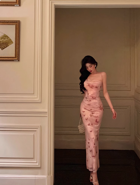 Elegant Sheath Pink Floral Sleeveless Burgundy 23rd Birthday Dress Party Gown Birthday Outfits Birthday Dress Ideas For Women DP1387
