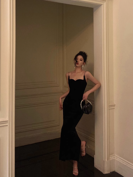 Elegant Sheath Spaghetti Straps Black 21st Birthday Dress Party Gown Birthday Outfits Birthday Dress Ideas For Women DP1412