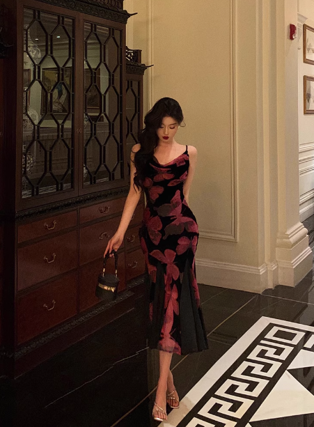 Elegant Sheath Spaghetti Straps Floral Chiffon Sleeveless 23rd Birthday Dress Party Gown Birthday Outfits Birthday Dress Ideas For Women DP1432