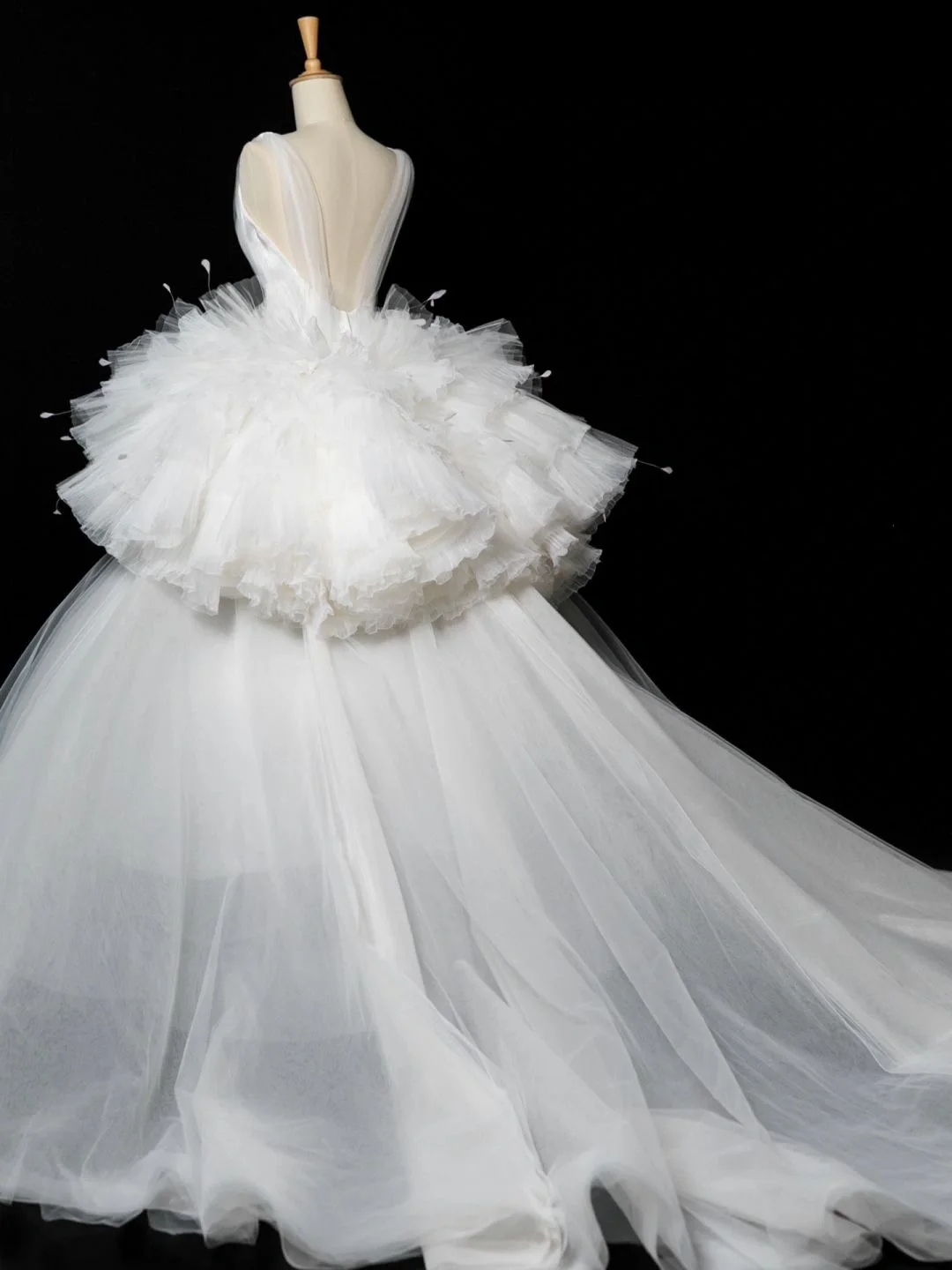 Elegant Wedding Dress Ball Gown V Neck White Tulle Summer Long Wedding Dresses Bride Dress Bridal Gowns DH348