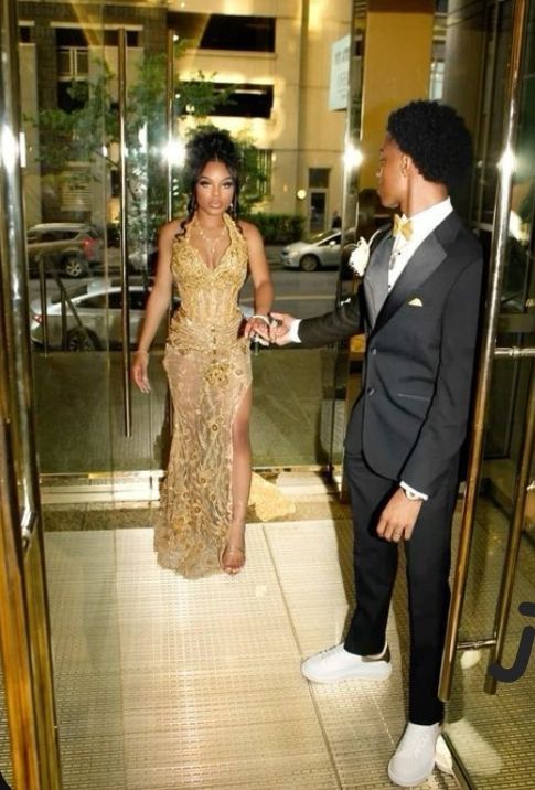 Gorgeous Mermaid Halter Gold Black Girl Silver Sequin Slit Long Birthday Dress Prom Dress Graduation Dresses D2574