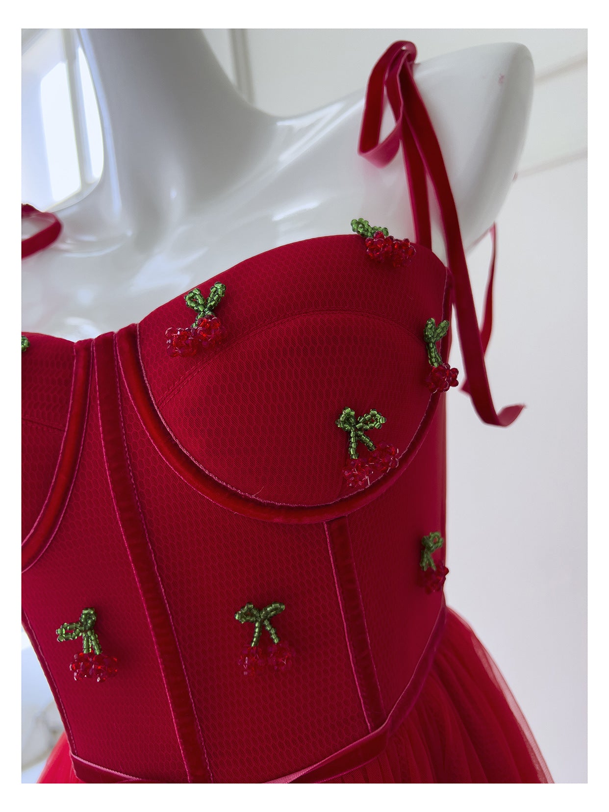 Modest A Line Spaghetti Straps Red Tulle Formal 8th Grade Homecoming Dresses Middle School Tea Length Birthday Gowns Graduation Dress Hoco Outfits DH2103