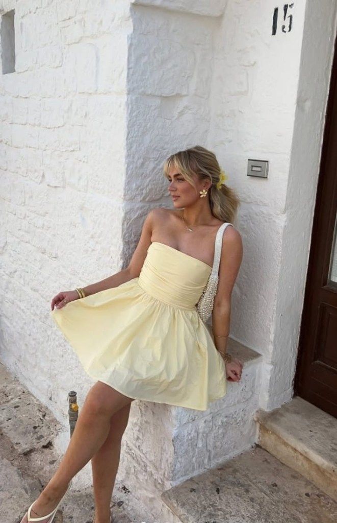Modest A line Strapless Yellow Mini Short Formal 8th Grade Homecoming Dresses Middle School Semi Formal Hoco Dress Cocktail Outfits DH1670