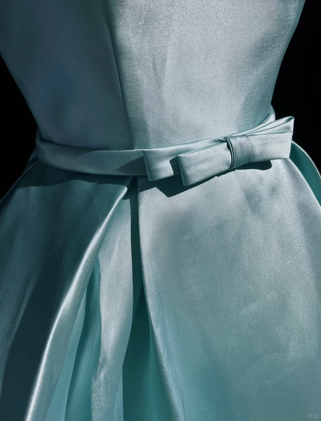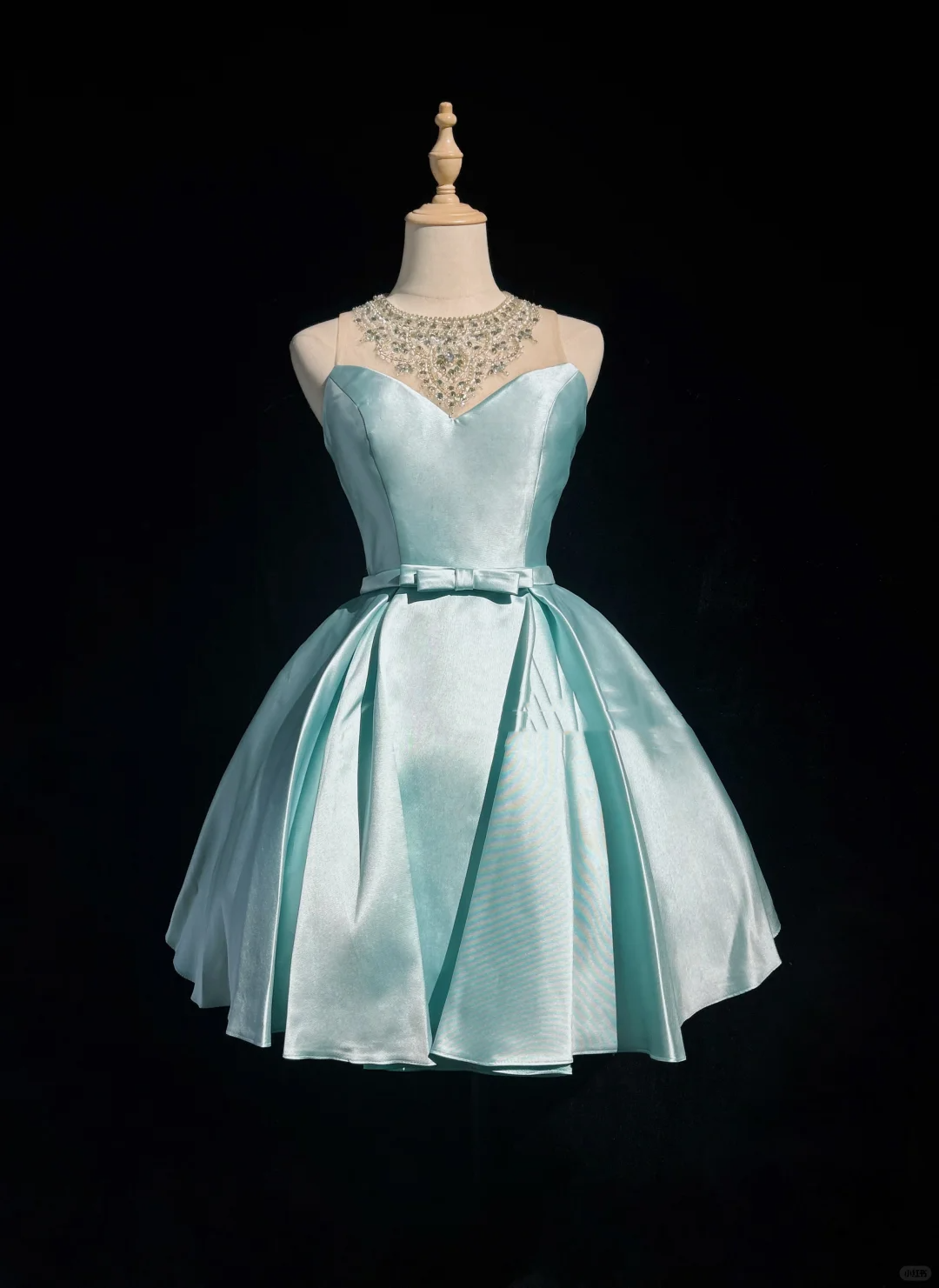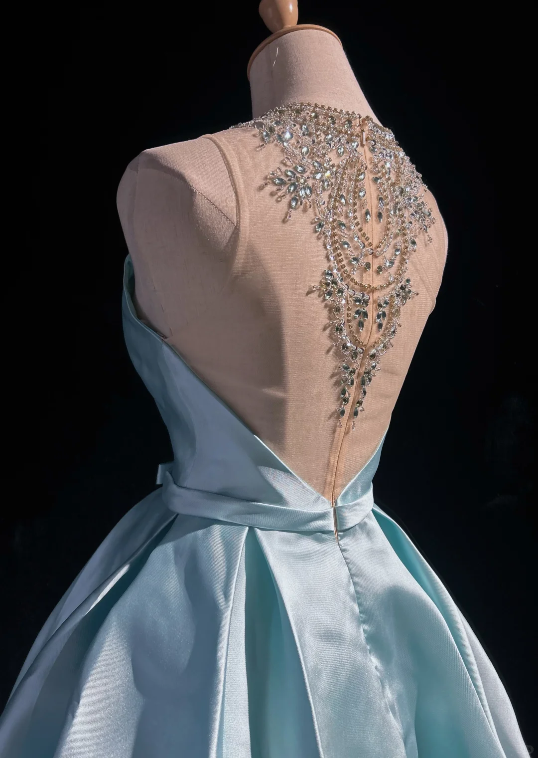 Pretty Ball Gown Scoop Neck Blue Satin Silver Beads Short Formal 8th Grade Homecoming Dresses Summer Middle School Hoco Dress 6th Grade Graduation Outfits DH527